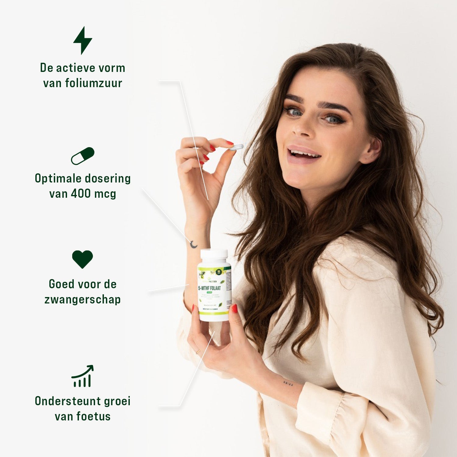 5-MTHF folaat is de best opneembare, actieve vorm van vitamine B9 (foliumzuur). Het hoeft niet meer omgezet te worden door het lichaam, waardoor het direct bruikbaar is.