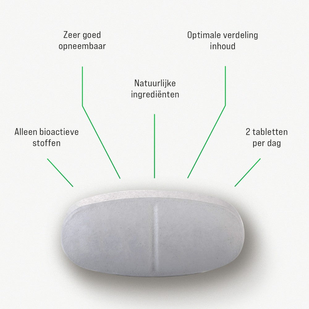 Aanbevolen dosering niet overschrijden. Een gezonde leefstijl is van belang. Een voedingssupplement is geen vervanging van een gevarieerde voeding.