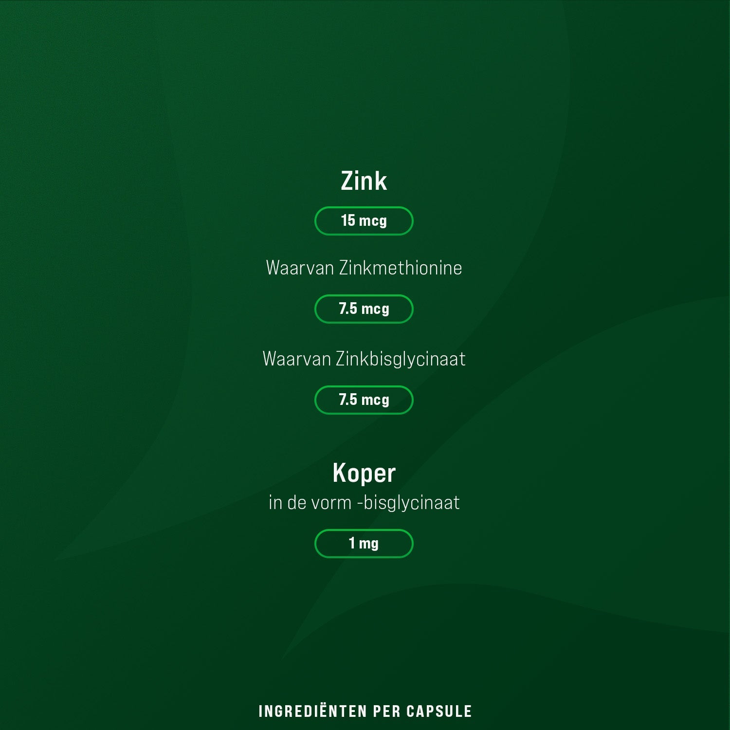 Het bevat een unieke combinatie van hoog opneembare vormen van zink (-bisglycinaat en -methionine) gecombineerd met koper (-bisglycinaat) voor een versterkte werking.